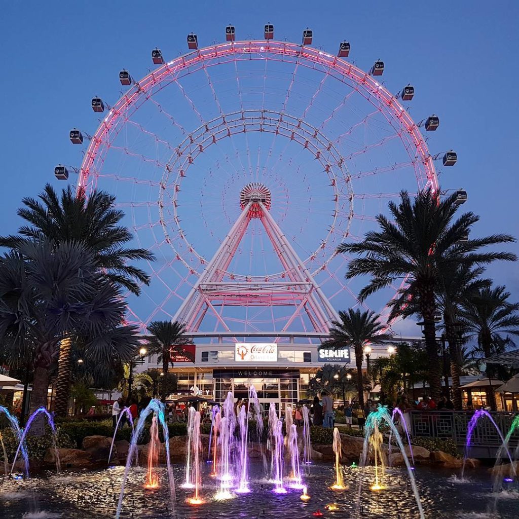 Descansamos um pouco no hotel e fomos para a I-Drive curtir o porto do sol na Orlando Eye (roda gigante da coca-cola) com vista 360 de toda a cidade de Orlando. A vista de lá de cima é muito bacana e o por do sol deu um toque especial. Foram 23 minutos lá em cima na cabine 23! Depois do passeio ficamos um pouco por ali para aproveitarmos o restante do dia.